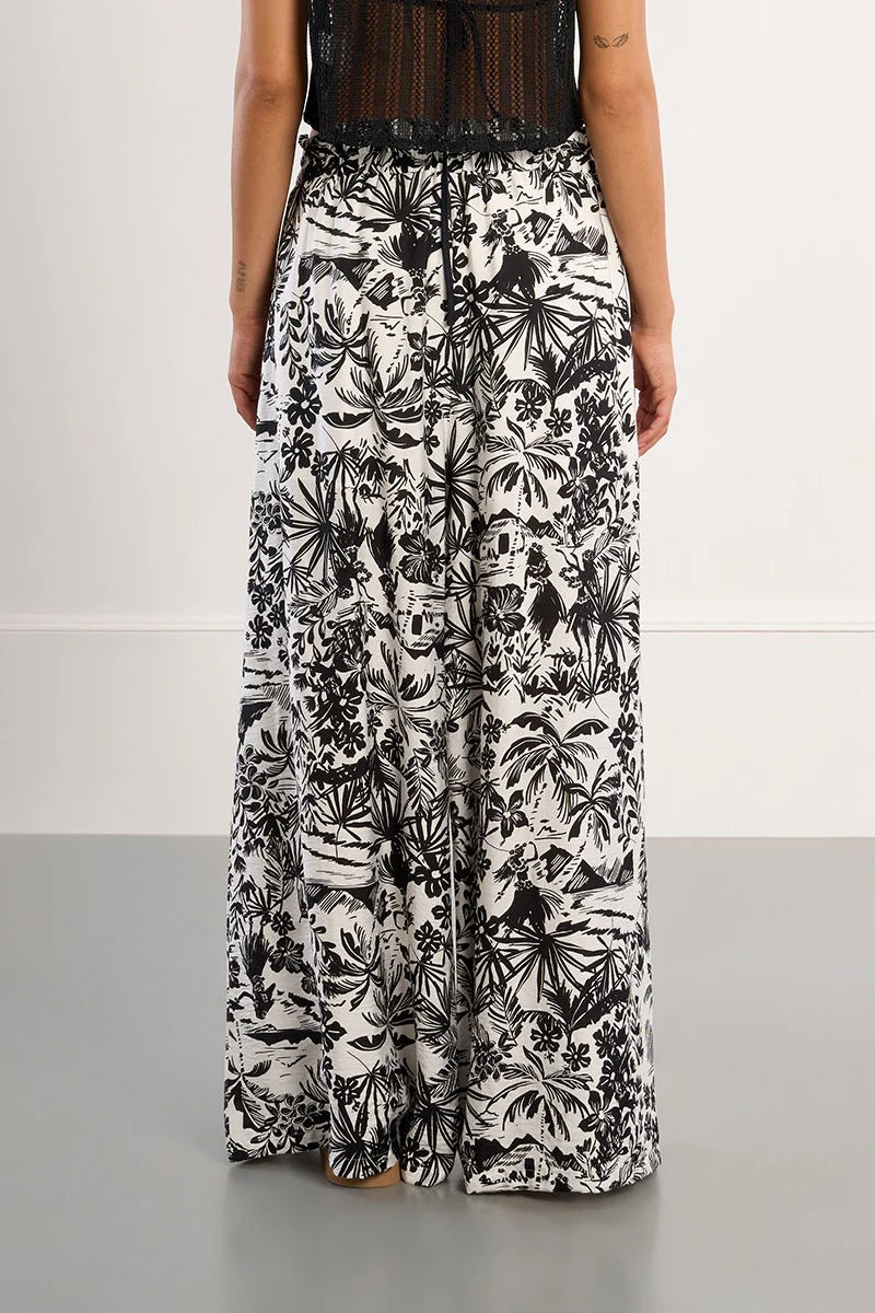 -Hawaii wide-leg pants-High waist-Patch pockets-Side length 105cm for a size S