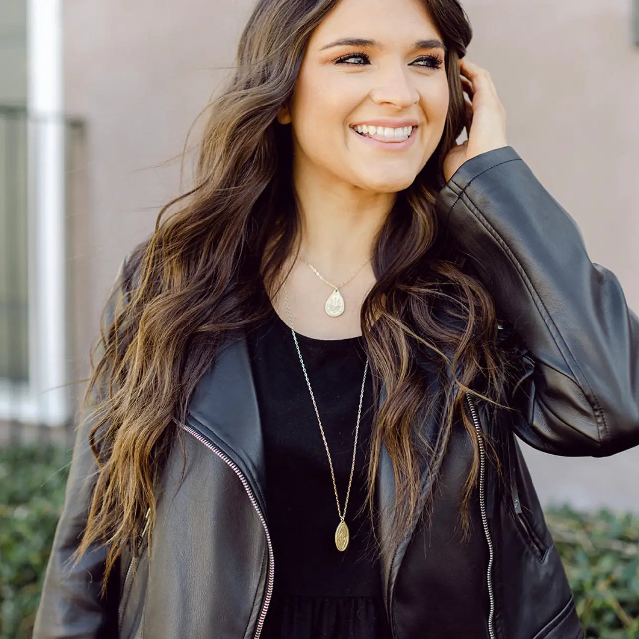This cute necklace is great for your stack! She is 16 inches so a shorter chain.
